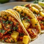 Köstliche Ananas-Hühnchen-Tacos mit saftigem Hühnchen und fruchtiger Ananas in knusprigen Tortillas – ein Fest der Aromen.
