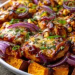 Ein einfaches und leckeres Gericht, das knusprige Süßkartoffeln, zartes Hähnchen in BBQ-Sauce und cremigen Cheddar kombiniert – perfekt für hektische Wochentage oder gemütliche Familienabende.