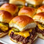 Saftige Blechpfannen-Burger-Slider mit geschmolzenem Cheddar, gewürzigen Pickles und einer köstlichen Sauce – perfekt für jede Feier!