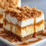 Diese Butterscotch Käsekuchen Riegel vereinen cremigen Käsekuchen mit einer knusprigen Keksbasis und einem Hauch von Butterscotch.