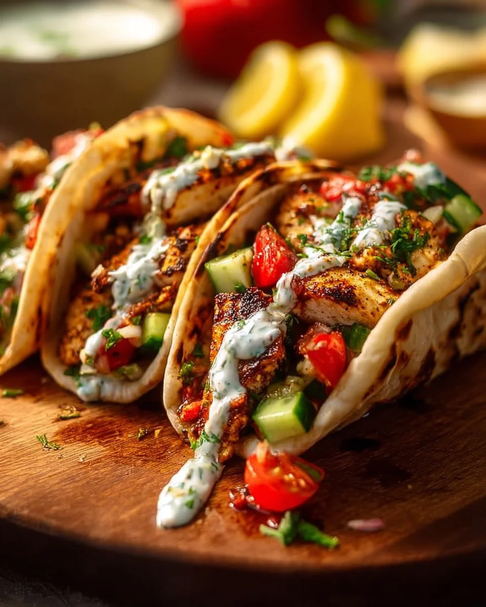 Gegrillte mediterrane Hähnchen-Tacos