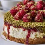 Elegante Pistazien-Raspberry-Crunch-Käsekuchen: Ein Traum aus Geschmack und Textur