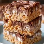 Leckere und knusprige Erdnussbutter Rice Krispie Treats mit köstlichen Schokoladenswirls – perfekt für jede Gelegenheit.