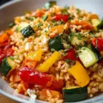 A colorful and flavorful vegetable rice dish, packed with fresh vegetables and delicious spices, perfect for any occasion.