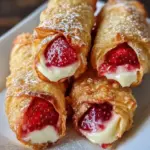 Krosse Eggrolls gefüllt mit einer süßen Erdbeer-Käsekuchen-Mischung, perfekt für jede Gelegenheit.