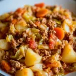 Ein herzhaftes Krautgulasch, das sowohl nahrhaft als auch schmackhaft ist, perfekt für gesellige Abende.
