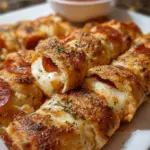 Leckere Pizza-Roll-Brotsticks mit einem knusprigen Äußeren und einer köstlichen Füllung aus Käse und Pepperoni.